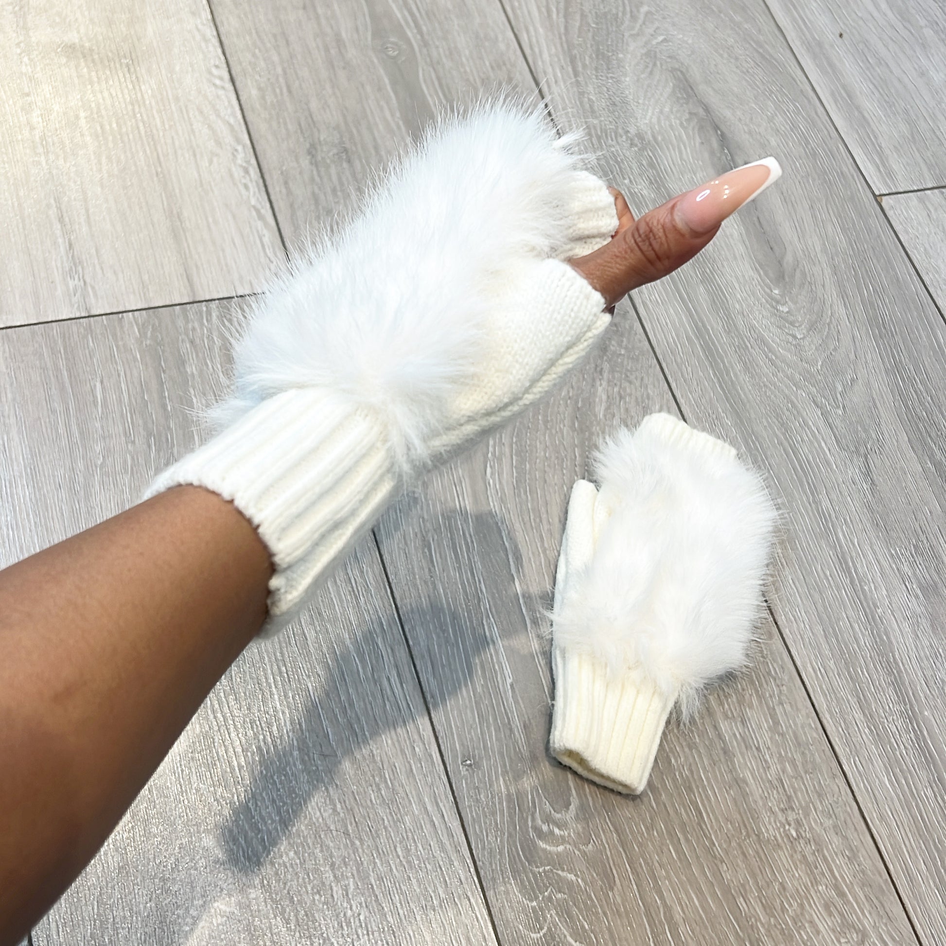 Ice white fluffy gloves